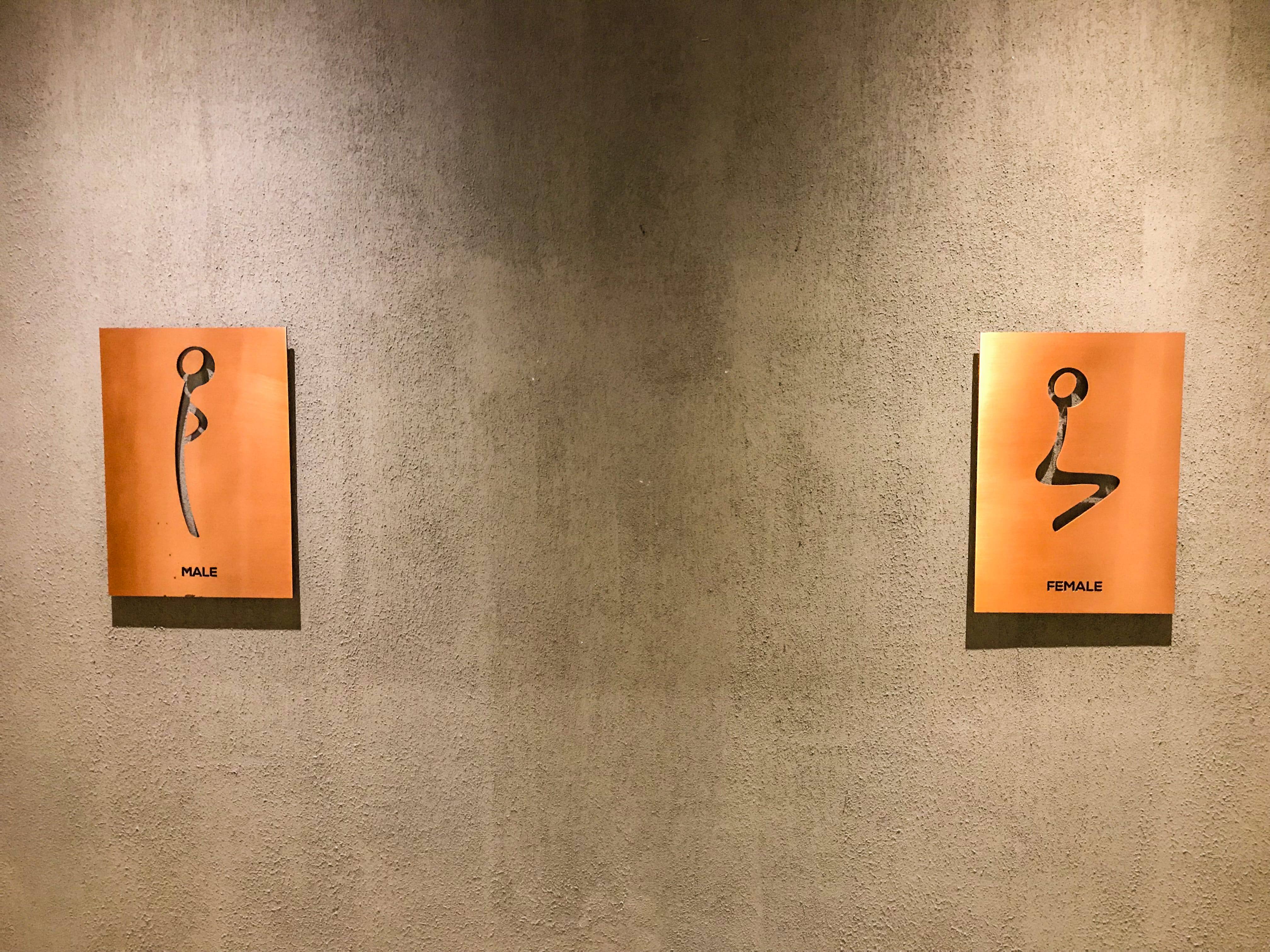 Stand and sit bathroom signs